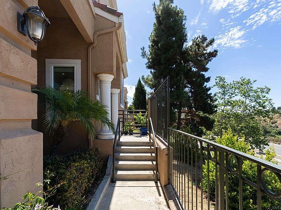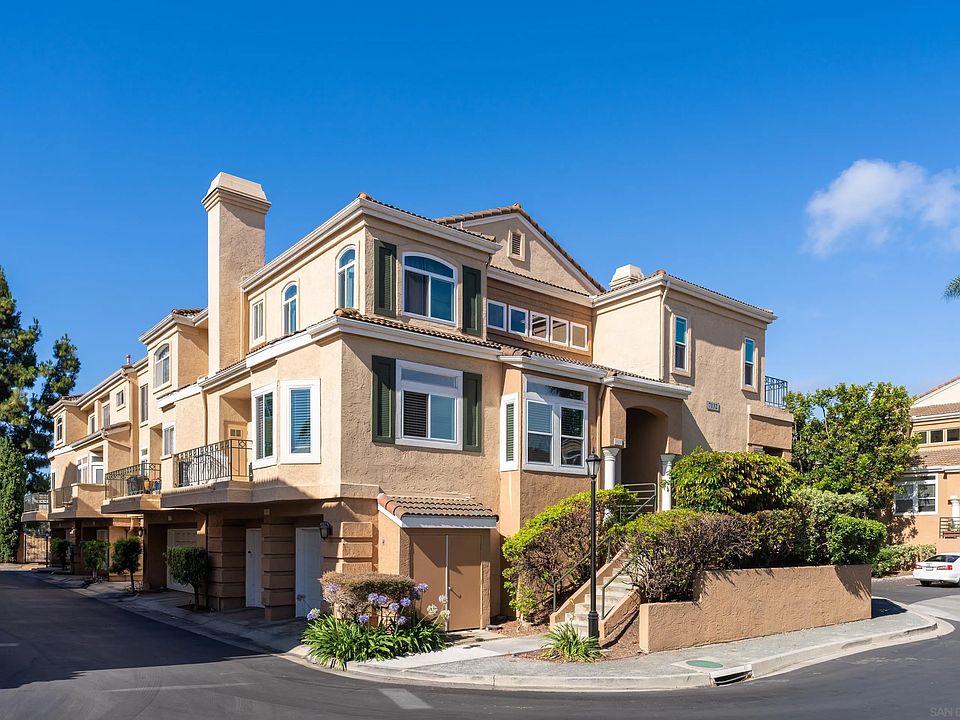 Pride of ownership defines this extensively remodeled end-unit townhome with modern finishes in the highly desired Renaissance/Avanti community. With 3 bedrooms, 3 baths and approx. 1,720 sq ft, this residence offers privacy, natural light, canyon breezes, and sunset views. The home showcases hardwood flooring, marble entryway, crown molding, recessed lighting, dual-pane windows and sliders with energy and sound packages. The gourmet kitchen was redesigned with quartz countertops and backsplash, a large custom island with built-in storage, farmhouse sink, stainless appliances, and built-in lighting. A separate bar area features quartz countertop, dual-tap kegerator, beer fridge, wine rack, and liquor cabinet, perfect for entertaining. All bathrooms have been remodeled with high-end finishes. The luxurious primary suite includes an oversized Carrera marble shower with multiple heads and bench, soaking tub, and dual sinks with Carrera countertop. Guest bath also features Carrera marble. Additional highlights include mirrored closet doors, 50-gallon water heater, Wi-Fi enabled high-efficiency HVAC with new ductwork, and gas fireplace with marble hearth and media access. Conveniences include upstairs laundry, hallway storage, and attached 2-car garage with built-ins, workbench, and extra storage. Community amenities include pool, spa, landscaped grounds, fountains, 24-hr security, and HOA coverage of water, sewer, trash, and landscaping. Close to UTC Mall, Nobel Fields, dog park, library, transit, and greenbelt trails.