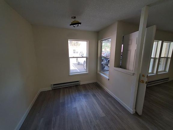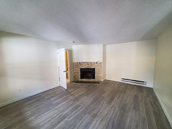 Includes stove, refrigerator, DW, new blinds and plank flooring, stacked WD, fireplace, ceiling fan, and storage closet. Hot water baseboard heat, off street assigned parking.