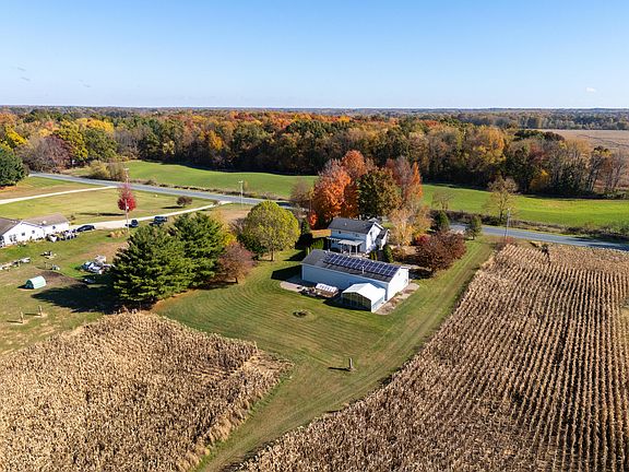 Welcome home to peaceful country living in Pavilion Township! This beautiful 3-bedroom, 2.5-bath home sits on a quiet 1-acre lot surrounded by open cornfields, offering the perfect blend of privacy & convenience. Located within the desirable Portage School District, this property provides a serene setting with quick access to town amenities. The bright living room features 16-ft vaulted ceilings & opens to the dining area. The spacious kitchen offers granite countertops, stainless steel appliances, & plenty of cabinet space. The large eating area provides room for both a full dining table & a sitting area; creating a flexible layout for everyday living. Sliders lead to a back deck with a gazebo & adjacent hot tub; perfect for relaxing or entertaining. The main floor includes a half bath & a convenient stackable washer & dryer. Upstairs, you'll find three bedrooms & two full baths, including the primary suite with a private ensuite bath. The full basement offers excellent potential for additional finished living space. Outside, a 32x64 pole barn is a standout feature with a heated workshop, concrete floors, two overhead doors, & a large sliding door. Additional amenities include a storage shed, greenhouse, & firepit; ideal for enjoying peaceful country nights. This charming home won't last long, schedule a showing today!