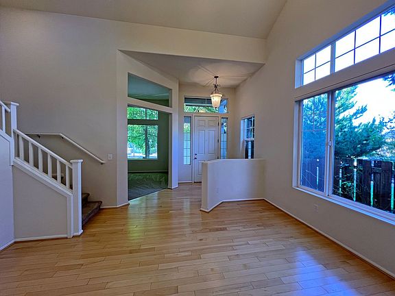 The living and dining area have soaring cathedral ceilings, open staircase, and hardwood maple flooring throughout the main level. The kitchen is spacious with gorgeous granite counter tops, gas range, stainless appliances, and island eating area. The kitchen, breakfast nook and family room are open with a gas fireplace.The downstairs finishes with a main floor bedroom & 3/4 bathroom.