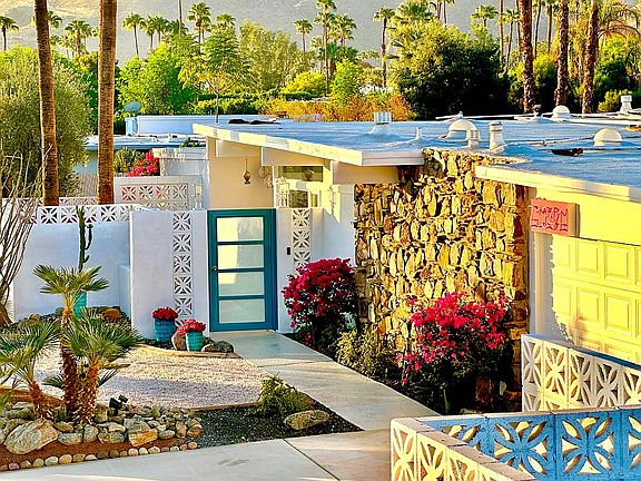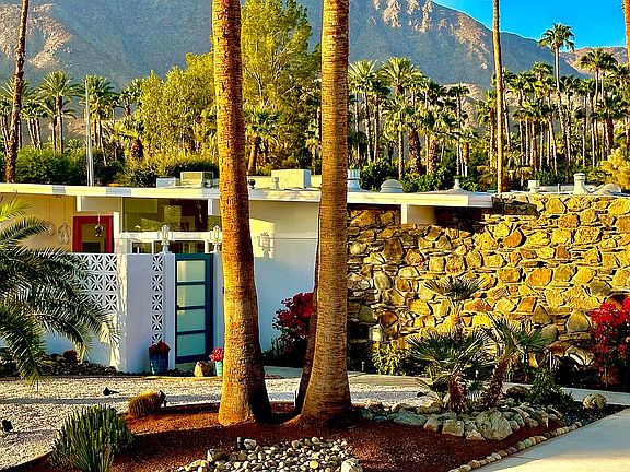 This Quintessential Mid-Century Modern Desert Home can be your own RESORT! This uniquely designed and well-appointed home sits on nearly an 18,000 sq. ft. maliciously landscaped lot. To throw in extra charm – this house comes furnished with elegant designs, including the custom artisan dining table with designer chandelier, to the living room crystal sculpture floor lamp, 18th Century French two drawer entry chest, Flat screen TV’s and much more (excluded is the artwork, turquoise sculpture bowl in the living room, Murano vase in the French appointed bedroom and various crystal pieces.) Ideally located in one of the most desirable neighborhoods in Rancho Mirage (Magnesia Falls Cove). The house has Hollywood allure, a gorgeous home, pool, spa, breeze block private entrance, with OUTDOOR living spaces, fire pit, BBQ, pergola dining area, and shower; along with the most incredible backdrop of mountain views!