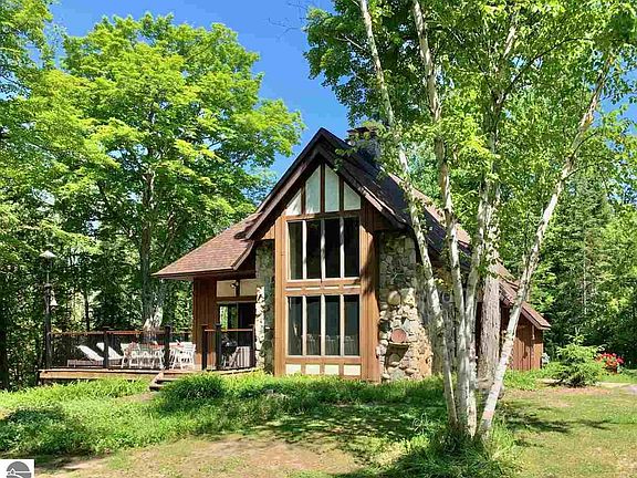 Pure Leelanau. 107 acres of rolling terrain and trails with ridge line lake views, lush open meadows, hardwoods, evergreens, farmland and 500 feet of coveted shoreline along the clear blue waters of Lake Leelanau. 4 BR 2 bath home with vaulted wood ceilings, inlaid wood floors and stone fireplace; the true essence of up north living. Detached garage (28 x 36) with 1008 sq ft, 1 BR, 1 bath upper apartment, 30 by 50 pole building , two waterfront 8 by 10 sleeping or storage cabins, fire pit and dock. 3,700 feet of E. Birch Point Rd frontage. Family owned for generations, this is truly an extraordinary offering.