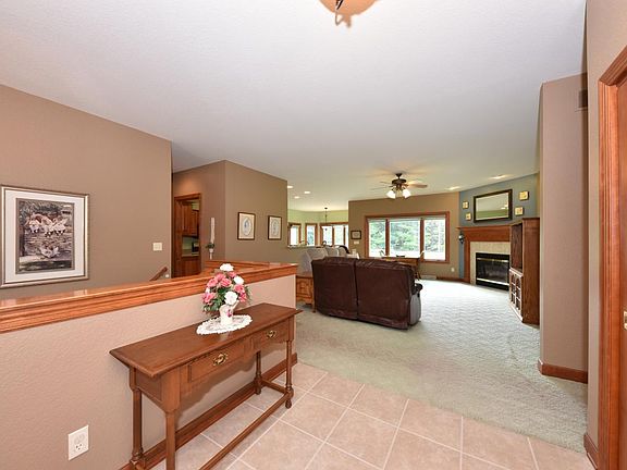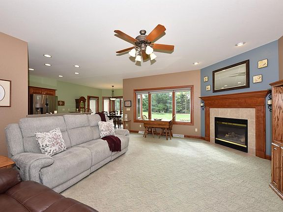 Stunning split ranch in highly desirable Watercress Springs in Erin, near Erin Hills golf course. This open concept home features kitchen with white birch cabinets, complemented by birch doors & trim throughout the home & dining area with an amazing view of your 2.1 acre lot. Living room with fireplace. Primary BR retreat with private full BA & spacious walk in closet. Jack & Jill BR with another full BA round out the main. Finished LL has a FR w/ 2nd fireplace, rec room with wet bar, 4th BR & 3rd full BA. What's even more amazing is the 6 car attached garage w/ heated workshop and its own private bath!! Need even more storage? Detached garage gives you that extra space! Beautifully landscaped yard features tall trees. Lined pickle ball court in the driveway, and a whole-home generator!