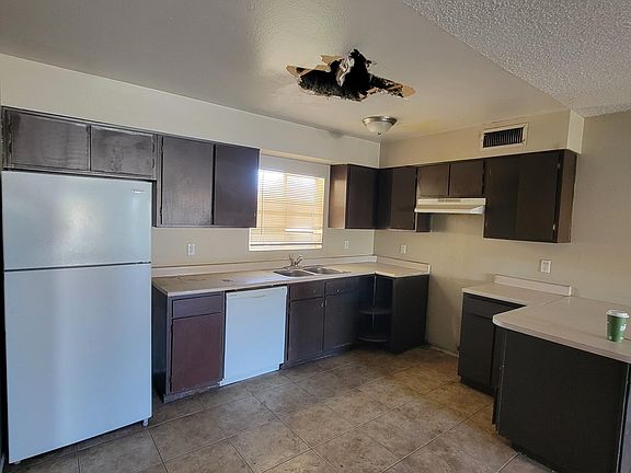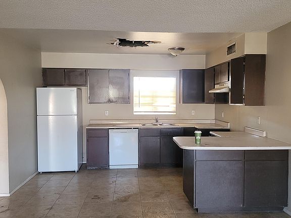 Single-story home with great potential featuring an open floor plan and a cozy fireplace in the living area. The kitchen offers a convenient bar layout that opens to the main living space. This property is in distressed condition, providing an excellent opportunity for renovation or investment. Enjoy a fenced backyard and a covered back porch, ideal for outdoor projects or relaxation once restored. A solid layout ready for vision and updates to bring it back to life.