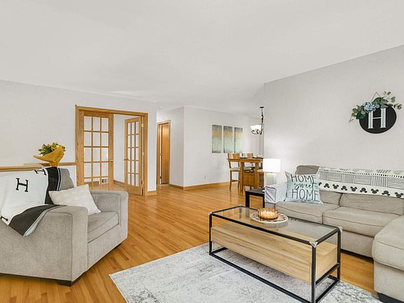 Welcome to this inviting home tucked on a peaceful Woodbury cul-de-sac, where modern updates meet cozy charm and an oversized backyard is designed for both relaxation and play. Upstairs, enjoy a light-filled living room with hardwood floors and a wood-burning fireplace that opens to a large deck overlooking the fenced backyard. The kitchen and eat-in dining area feature stainless steel appliances and a second walkout to the deck—ideal for everyday indoor/outdoor living or entertaining. French doors open to a flexible office space or potential 4th bedroom, and just beyond you’ll find two comfortable bedrooms, including a private owner’s suite with its own ¾ bath. A second full bath with tiled shower and updated vanity completes this level. The bright lower level offers a welcoming family room, a spacious third bedroom with large windows, a half bath with updated fixtures, a laundry/utility room with walkout access to the yard and extra fridge, plus a workshop/storage area with abundant built-ins—perfect for future finishing to add equity. Outdoor living shines with a newer concrete paver patio (2023), private walking path, included playset, and storage shed. Thoughtful updates provide peace of mind: attic insulation (2024), new toilets and vanity, water softener, roof (2019), furnace (2021), and water heater (2020). A 2-stall attached garage with side service door and built-in cabinets completes the package. Conveniently located near schools, parks, trails, and shopping, this home blends quiet neighborhood living with easy access to all Woodbury has to offer. Don’t miss out!
