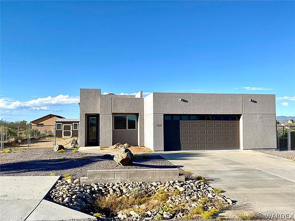 THE SALE OF THIS HOME INCLUDES THE VACANT LOT NEXT TO IT! This stunning property is in beautiful Valle Vista just about 20 minutes north of Kingman and the community has a golf course, restaurant, and community pool for your enjoyment. This modern and southwest combination make this house stand out from the rest. It has 3 bedrooms, 3 bathrooms, and an open layout that includes the kitchen, living room, and dining area with 2 oversized sliding glass doors that have amazing views of the mountains! and high ceilings! High ceilings throughout give it an open feel. The two guest rooms are joined by a large Jack and Jill bathroom and both have large closets with built in organizers. The master suite is spacious with a large bathroom that also holds the walk-in closet, jetted tub, walk-in shower and dual sinks! This is a bright and spacious home that has custom tile and granite in the kitchen and all 3 bathrooms and will make you feel like you're at the spa. Large soaking tubs in 2 of the bathrooms and windows that make it feel bright and airy. It is also equipped with an over size 2 car garage that has its own mini-split AC unit to keep you and your cars/toys at an acceptable temperature during the heat of summer! There is enough room in the garage for a workshop area or crafting area if you like. The front yard has easy care rock and and beautiful palm tree that welcomes you when you pull up! RV parking along the side and nice sized shed in the backyard for extra storage. The back and side yard are all fenced in with chain link and don't forget to check out the extra large, fully concreted patio for outdoor entertaining. The vacant lot to the west of the property will also come with the sale of this home which will ensure the amazing views of the mountains will be yours forever~