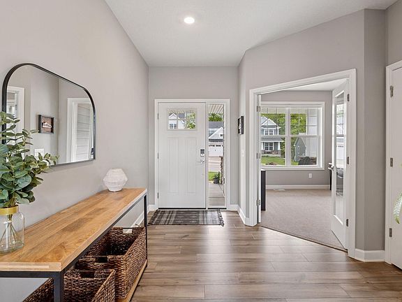 This Lennar-built Taylor model in The Park community blends thoughtful design with modern elegance for a home that’s as functional as it is beautiful. The open-concept kitchen shines with quartz countertops, GE appliances, and a large center island perfect for casual dining or entertaining. The inviting living room features a cozy gas fireplace and opens to a one-year-old maintenance free deck, ideal for relaxing or grilling outdoors. Upstairs, a spacious loft and spa-like primary ensuite with a soaking tub and tiled shower create comfortable spaces to unwind, while the convenient upper-level laundry and ample storage add everyday practicality. The newly finished lower level offers a bright family room with look-out windows, a guest suite, and additional bath, expanding your living and entertaining options. Located 7 minutes from downtown Excelsior, you’ll enjoy nearby parks, trails, and local favorites like Chanhassen Dinner Theatres and Paisley Park, offering the perfect blend of modern living and small-town charm.