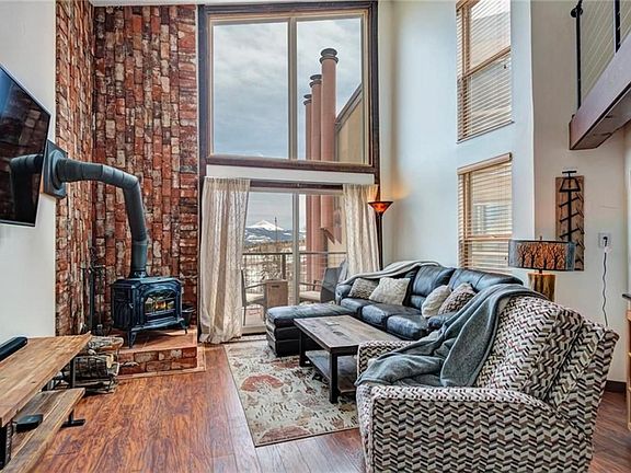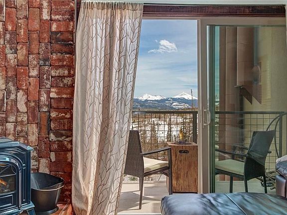 This is a fully-furnished top floor, end unit for extra privacy, 2-bedroom, 1-bathroom condo in Silverthorne with 2 queen beds and a sleeper sofa. It is newly remodeled throughout and features vaulted ceilings in the living area and master bedroom, floor to ceiling windows, hardwood flooring, a large loft, wood stove, and private balcony with a private grill, gas firepit, and outdoor seating with breathtaking expansive views of the mountains.