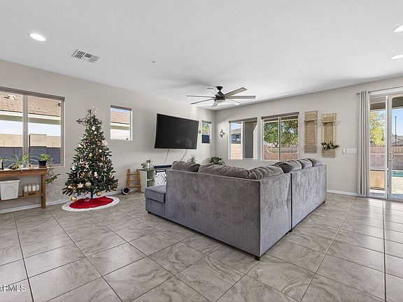 Welcome to this wonderful single story home in beautiful Seville. This contemporary 4 bedroom/2 ½ bath home features an open concept floor plan with an abundance of natural light and modern touches throughout. The home boasts of soaring ceilings, bright kitchen, neutral tile, and plenty of storage space. The home has several upgrades including NEW AC & Refrigerator 2025 with warranties. Fire sprinklers, skylight, water softener, and water heater replaced in 2023. You will love the easy to maintain landscaping, covered patio, and spacious backyard with heated pool. The home backs to a greenbelt, so no neighbors directly behind! This award winning community offers beautiful views, hiking/biking trails, golf, swimming, tennis, club house, and more! This home is truly move in ready!