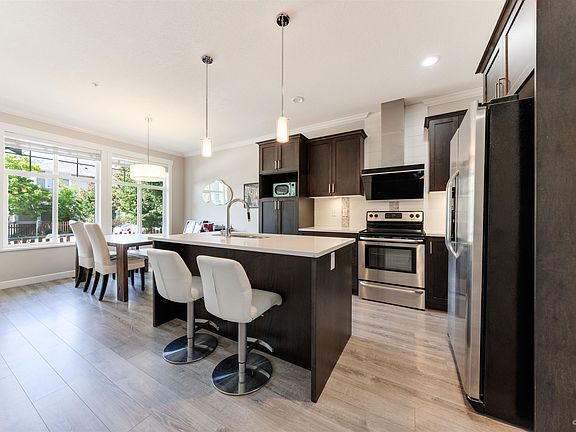 Entering this beautiful large townhouse, you are welcomed by the grand living room boasting 20 feet of high ceiling, large dining area and gourmet kitchen with a massive island, with quartz countertops, stainless steel appliances, and a gas fireplace. Main floor features a masters bedroom, walk-in closet and huge en-suite. Upstairs has 2 large bedrooms and a huge loft area. Basement is fully finished with one bedroom, a full bathroom, and a recreation room, and pre-wired for sound system. Other upgrades include laminate floor throughout the unit, and epoxy flooring in the garage. Gas connection in the patio for BBQ. Double garage with extra storage, and exterior parkings. Walking trails and playgrounds near by.