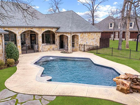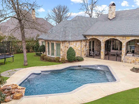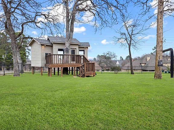 Welcome to this stunning home nestled on a spacious half-acre lot in the prestigious Oak Hollow Subdivision. With a beautifully open floor plan, this luxurious home boasts 5 bedrooms, 4 full bathrooms, and soaring ceilings enhanced with gorgeous beam details throughout. The home features an expansive 4-car garage with an additional golf cart storage space, ensuring plenty of room for all your vehicles. Inside, you’ll find two elegant living rooms and two dining areas, including a formal dining room and a cozy breakfast room. The large gourmet kitchen is a chef’s dream, complete with a 6-burner gas cooktop with a griddle, pot filler, dual ovens, and a spacious walk-in pantry that provides abundant storage. Rich stained beams, hand-scraped wood floors, and solid core 8 ft doors add warmth and sophistication, while high-end details such as plantation shutters and a central vacuum system elevate the home’s design. The luxurious master suite includes a spa-like bathroom featuring a clawfoot soaker tub, a spacious walk-in shower with a frameless glass surround, and a closet that is truly a dream come true. Four additional bedrooms provide ample space for family or guests, including a private guest suite with its own bathroom. Two bedrooms share a Jack-and-Jill bathroom, while the fifth bedroom enjoys access to the additional bathroom. For added convenience, the large laundry room includes great storage, making household chores a breeze. Step outside to the backyard oasis, where you'll find a Gunite swimming pool with a waterfall and dive rock perfect for relaxing or entertaining. The outdoor kitchen, complete with a grill, sink, fridge, and double island, provides an ideal space for hosting family and friends. An extended covered patio offers the perfect setting to unwind, while kids enjoy the outdoor play area or retreat to their own air-conditioned playhouse with its own deck. Don't miss out on this incredible home.