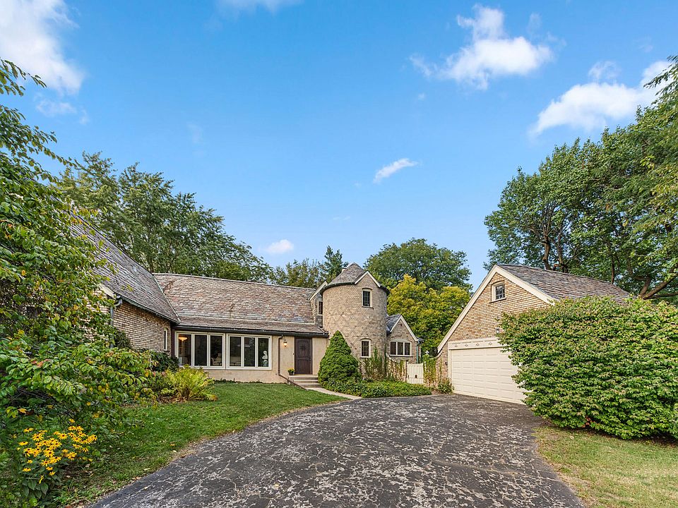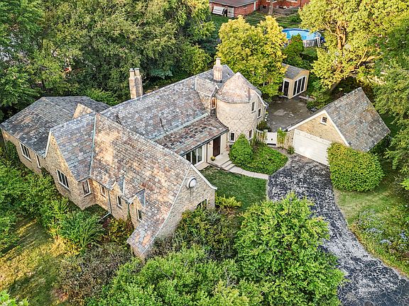 Nestled amidst the charm of desirable Knickerbocker Pkwy, this 1926 French Country farmhouse offers a captivating blend of old-world elegance and modern comfort with more than 3000 sq ft of space. Situated on over a half-acre lot, this romantic and private retreat invites you to experience a truly unique lifestyle.Step inside to be greeted by the spacious Great room with soaring 18-foot beamed ceilings, rich hardwood floors, gas fireplace, and an abundance of natural light streaming through stunning leaded glass windows. Adjacent to the living room, the family room with its large bay window overlooks the sprawling yard.The main floor primary boasts an en-suite bathroom and offers a peaceful retreat. The home's three additional bedrooms, including a delightful turret suite with its own private bath and sitting room, provide welcoming space for family or guests. The separate breakfast room and a charming sitting area off the kitchen provide additional spaces for relaxation and entertaining.A partially finished basement with a gas fireplace, original tile, and kitchenette adds versatility and potential for customization. The 2.5-car garage, complete with a storage loft, offers ample parking and storage space.Outside, the property features a detached screened-in porch with glass window inserts, perfect for enjoying the outdoors. Two sheds provide additional storage for your belongings. The well-maintained slate roof, updated by the Mortenson Roofing Company, ensures lasting durability. Other updates include replaced turret roof, new slate peak, new copper valley, rebuilt chimney, and new flashing and tuckpointing on 2nd chimney, Generac generator.With its desirable location and charming character, this French Country Farmhouse is a rare find. Don't miss the opportunity to make this unique home your own.