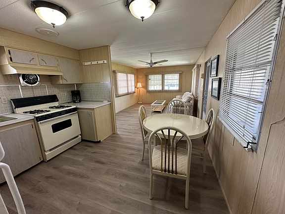 2 Bedroom/ 1 Bath Singlewide in Ridgeway, all ages, Manufactured Home community in Hobe Sound. Brand new vinyl plank, waterproof flooring in Living Room, Kitchen & Hallway. Laminate flooring in both bedrooms. Kitchen open to Living Room. Large, Sunny Florida Room on the side of the main home. Long carport which can accommodate 2 cars. Large detached shed houses the washer/dryer. In 2013 the electrical service was updated to 100 amp in main home & 50 amp sub panel in the shed. Ridgeway is minutes from Ocean beaches, ICW Boat Ramp, shopping, restaurants & entertainment. NO HOA fee. If you want to join the Clubhouse, Pool & Activities you pay $300/Year. YOU OWN THE LAND - ALL PETS WELCOME. CASH ONLY - TOO OLD FOR A MORTGAGE.