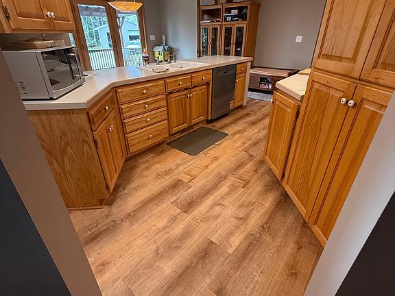 This charming home for sale is on a beautiful tree lined lot in a peaceful area with nearby walking trails. This home features brand new flooring on the main level and stainless steel appliances. The finished lower level is perfect gathering space, complete with a cozy fireplace. A framed pole shed 32x48 with concrete flooring & electrical offering a large, open layout ideal for workshops or storage of RV's boats or large vehicles.