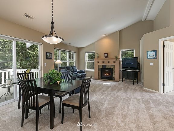 This exquisite 1400+ square foot home is nestled in a quiet street of the Canyon Ridge community, surrounded by mature native growth, a running brook, and a peaceful wooded view. The light, bright Chef's kitchen features lots cabinet space, and breakfast bar. Perfect floor plan with 3 bdrms 2 bths, vaulted ceilings, gas fireplace, French doors and skylights, new bronze hardware, plus new carpet and vinyl throughout.