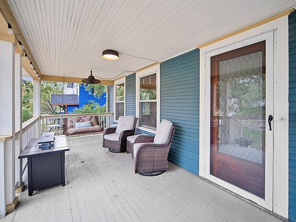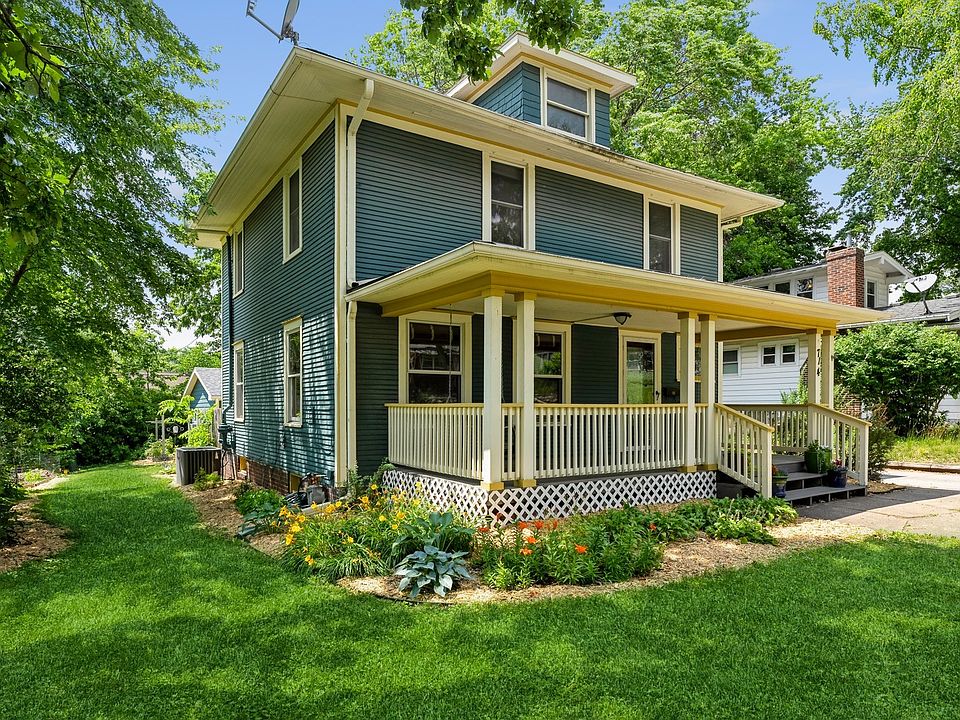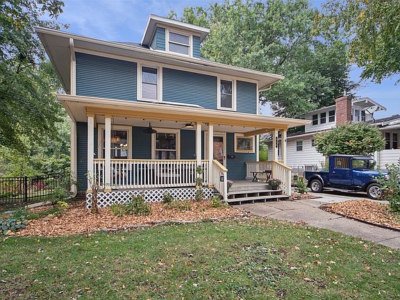 Come and see the character of this 2-story home located North of Grand in Des Moines. SEE 3D TOUR ON HOMES.COM. Boasting original woodwork, hardwood floors, stained glass windows, this 3-bedroom, 2-bathroom residence offers a serene retreat amidst mature trees and a large front porch with porch swing. The main floor features 2 large living room areas and a fireplace, formal dining room, and kitchen has been FULLY REMODELED! All kitchen appliances are NEW, including a new refrigerator with vintage design! Upstairs, three comfortable bedrooms await, including a primary suite with a walk-in closet and second floor laundry, rare to find in a home of this era. Each room enjoys natural light and views of the peaceful surroundings. Relax on the front porch swing or on the back deck, both perfect for enjoying morning coffee or evening sunsets. The mature trees provide shade and privacy, and the back yard is fully fenced. The 2 car detached garage has a 300 sq ft finished bonus living space that has AC and heat for use in all seasons. The roof and water heater are NEW in 2024. Foundation has been professionally evaluated and braced in 2024. Situated north of Grand in Des Moines, this home offers a prime location with easy access to local parks, shopping, dining, and entertainment. Enjoy the convenience of nearby amenities while relishing the tranquility of a residential neighborhood.