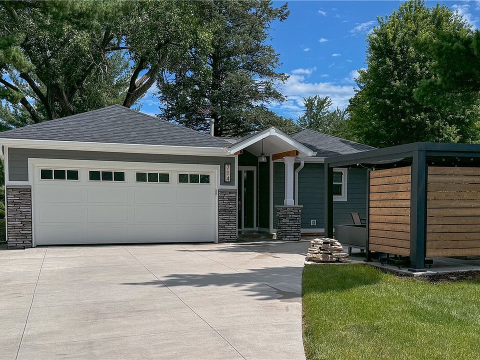 This charming 4 bedroom, 3 bathroom craftsman ranch home in Des Moines' desirable Waterbury neighborhood offers the perfect blend of comfort and modern living. An open-concept living and dining area flows seamlessly into the spacious kitchen, which boasts ample countertop and cabinet space. The master suite is a true retreat, complete with a very spacious bathroom that includes a large double vanity, marble tiled shower, and luxurious soaker tub. The desirable split floor plan conveniently separates the master suite and laundry room from the other bedrooms, ensuring tranquility yet retaining easy access to the rest of the home. Downstairs, the large finished basement with bedroom and en-suite bathroom is a versatile space for any homeowner. Whether you're looking for a cozy family room for movie nights, a dedicated area for your home workouts, or a quiet home office space, this basement has room for it all. Outside, enjoy a serene setting with mature trees and a well-maintained yard while relaxing on the patio or in the hot tub (available for separate purchase). Recent exterior enhancements include a new roof, cement board siding, gutters, and patio area completed in 2020. The picturesque hilltop location and rear alley access add to the charm of this Waterbury ranch, whose spacious living, modern comforts, and prime location make it the perfect place to call home.