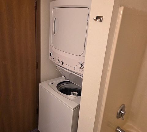 The kitchen comes with all appliances, plus theres an in-unit washer and dryer for your convenience. The primary bedroom has a walk-in closet and private bathroom, and theres another full bath with a walk-in shower.