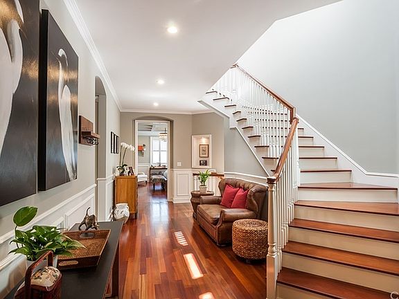 - Recessed Lighting, Built-Ins, High Ceilings (9 Feet+), Balcony, Granite Counters, Crown Moldings, 2 Staircases, Wainscoting, Sump Pump
