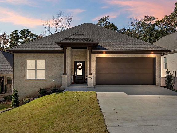 New construction by James Built Homes in Gibralter Heights of West Little Rock, just south of Chenal Parkway and north of Kanis. This thoughtfully designed one-level home combines timeless traditional style with modern features in a serene, private setting. The brick exterior and rich brown accents create handsome curb appeal, while energy-efficient windows enhance both comfort and value. Inside, 9-foot ceilings, wide plank oak hardwoods, and expansive windows create an open, light-filled atmosphere. The spacious great room with color-controlled LED fireplace flows into the gourmet kitchen, complete with GE stainless gas range, microwave, Frigidaire dishwasher, and center island with bar seating. The adjoining dining area opens to a covered deck, ideal for outdoor living. The primary suite is a relaxing retreat with a spa-like bath, dual vanities, a spacious frameless walk-in shower, and a walk-in closet. Two guest bedrooms and a full bath are located privately near the front of the home. Additional features include a laundry room w/ extra storage, designer lighting, LED recessed lights, gutters, partial wood fence, and an insulated garage door.