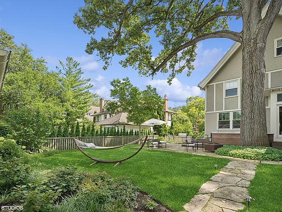 Welcome to 714 Central Avenue, a perfect fusion of modern elegance and classic charm in east Wilmette. This impressive home, completely renovated in 2012/2013, boasts five bedrooms and four and a half bathrooms. Fabulous curb appeal, starting with the inviting front porch that leads to the gracious foyer and beautifully designed living spaces, including a convenient first-floor office. Enjoy high ceilings, hardwood floors, and exquisite millwork throughout. The home has been meticulously renovated to provide all new electrical wiring, plumbing, mechanical systems, Marvin windows, roof and more. The chef's kitchen, with gorgeous marble countertops, high end appliances and abundant light, features an island and breakfast bar, perfect for both daily living and entertaining. The spacious living room with wood burning fireplace seamlessly connects to the charming dining room, while a peaceful sitting room offers views of the professionally landscaped yard. On the second floor, the luxurious primary suite includes a new bath with a double vanity, shower, soaking tub, and an immense walk-in closet. Two additional bedrooms, a hall bath, and a laundry room complete this level. The expansive 3rd floor has two large bedrooms, a full bath and incredible ceiling height. This floor offers so many possibilities - an au pair suite, a guest suite, private office space, or wonderful hang-out space. The fully finished basement provides ample recreation space, a bar area with sink and beverage refrigerator, a workout area, and a full bath, all with a contemporary, loft-like feel. Additional highlights include a large, bright mudroom with a washer and dryer, built-ins, and storage space. The three car garage was built in 2014. Enjoy the beautifully irrigated yard and garden from the front porch, deck or patio. This exceptional home is a true standout in vibrant east Wilmette, close to schools, parks, the Metra, the village and all it offers, and of course minutes to Lake Michigan.