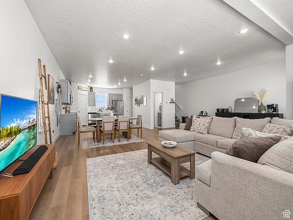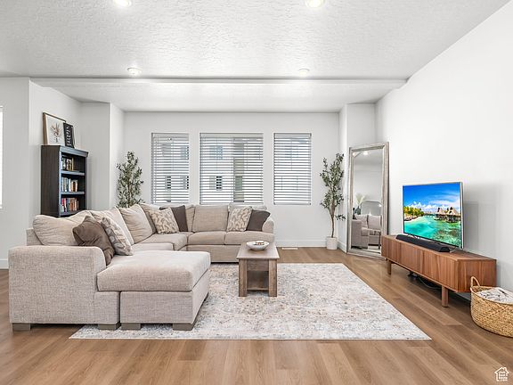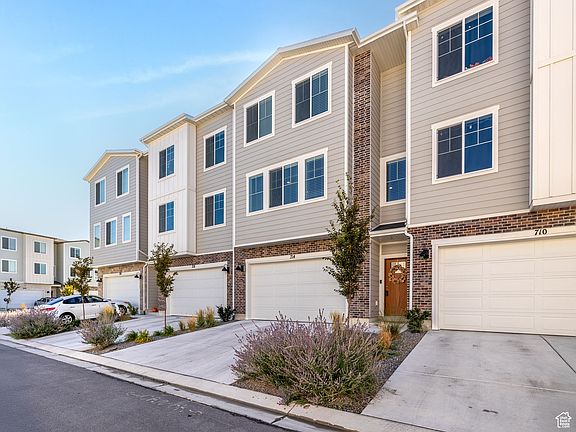 Welcome to this beautiful 3-bedroom, 2.5-bath townhome in The Towns at Brylee Farms! Built in 2024, this 2,555 sq ft home offers modern style and functionality in a thriving Eagle Mountain community. Enjoy an open floor plan with a spacious great room, large windows, and beautiful finishes throughout. The kitchen features quartz countertops, ample cabinetry, and included dishwasher, microwave, and stove. Curtain rods and curtains in the master and small bedroom are also included. The 4 car garage features a home gym, and the mounted mirrors may stay upon request. Upstairs includes a roomy primary suite with walk-in closet and private bath. The unfinished basement provides space to grow or customize. It is the perfect space to finish a mother in law apartment. Energy-efficient design with double-pane windows, central air, and forced-air heating. Community amenities include a clubhouse, pool, playground, picnic area, and pickleball and tennis courts. This home is subject to third party approval. Buyer to verify all information.