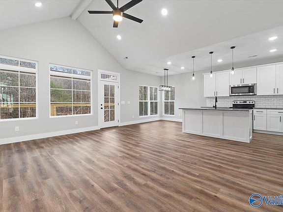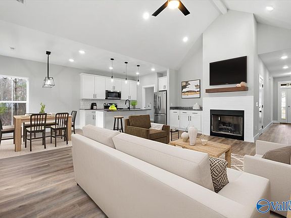 SELLER CONCESSIONS of $5000!! Discover Scottsboro, Alabama where the mountain meets the lakes, offering a serene 3 bed 2 bath layout with approximately 1410 square feet of heated space. With gas service for fireplace and water heater, a full appliance package, and elegant finishes like granite countertops and engineered wood flooring, these homes blend convenience with style. Featuring 9-foot ceilings throughout and a vaulted great room, they provide an airy ambiance for everyday living and entertainment. Situated on cul-de-sac level lots with vinyl exteriors and brick foundations, they offer low-maintenance living conveniently close to schools and shopping. Call today for your viewing!