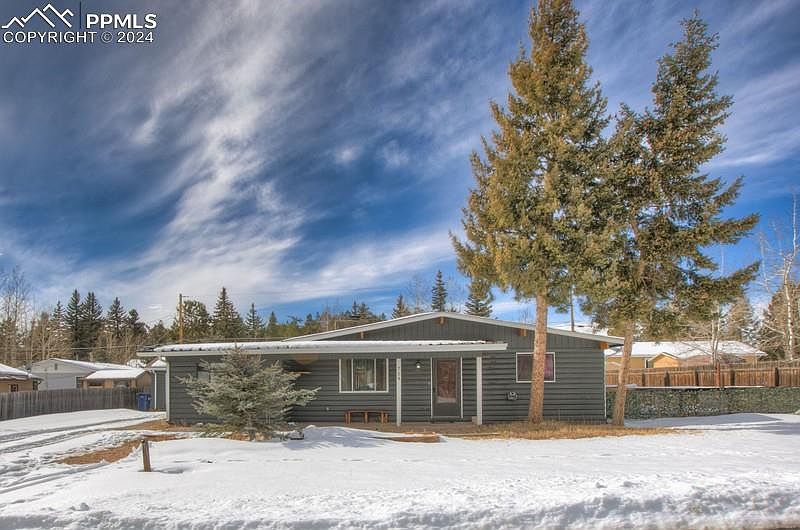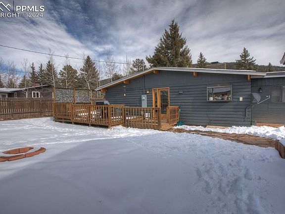 Welcome to your exclusive, one-of-a-kind Woodland Park home! This charming ranch style cabin features three bedrooms, a bright open floor plan with skylights, and beautiful wood beamed ceilings. A garden window in the kitchen, working fireplace in the living room, and new home appliances including Samsung dishwasher, oven range, and full-sized washer and dryer that connect to Wi-Fi and smartphone apps. Enjoy spacious parking in the oversized two-car garage, extra storage for tools and gardening equipment in the attached workshop, and plenty of additional parking in the extended driveway. The backyard is fully fenced for privacy and includes a small fire pit to enjoy cozy summer evenings in the mountains. A large wrap-around deck offers ample space for seating, grilling, and dining, as well as a stunning view of Pikes Peak from your own backyard. This enchanting in-town cabin home presents a rare opportunity to enjoy mountain living at its finest, including breathtaking hiking and biking just five minutes to Lovell Gulch Trailhead, and fifteen minutes to Rampart Reservoir for fishing, kayaking, boating, camping, and picnicking. A short walking distance to Memorial Park, the summer farmer’s market, and downtown restaurants, breweries, and shopping. Local school district is across the street and down the block, including kinder-care, middle school, and Woodland Park high school. Don’t miss out on this incredible opportunity to enjoy living in the delightful City Above the Clouds.