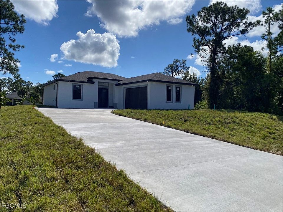 Check this beautiful property 3 beds 2 baths One of the few New Constructions on the market with .50 acres, sitting in a well developed neighborhood. This house has many updated features: Impact doors and windows, tiles in all floors, quarts countertops, roof shingles, new stainless steel appliances. All in a very well designed layout, cozy and comfortable. The perfect home for a family looking for space and modernity in the growing community of Lehigh Acres. Seller is offering contribution for buyers closing costs.