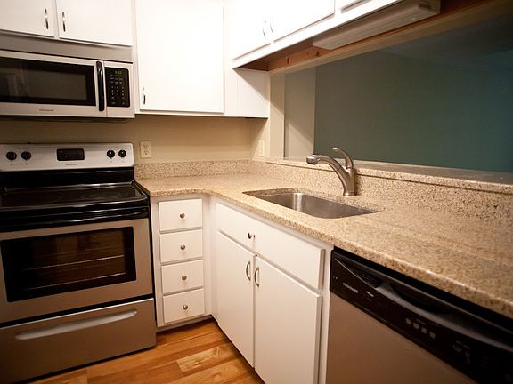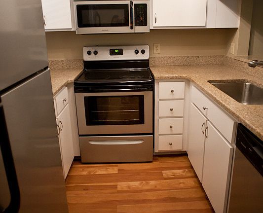B14 is one of our renovated units. It features faux hardwood floors, stainless steel appliances and solid surface counter tops.