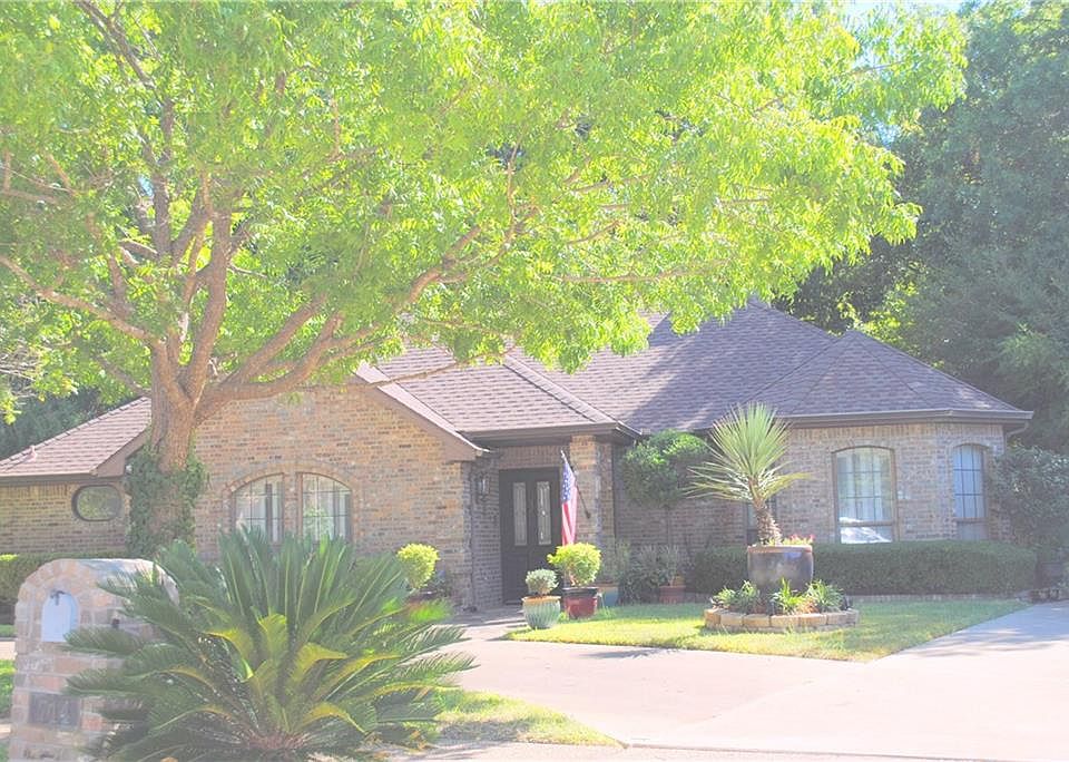 Executive true custom built home on deep lot with mature trees. Near park, fire station and school. Designed with lots of storage, closets, custom built cabinets through out, wet bar, numerous ceiling fans, High quality vinyl wood flooring in living area, vaulted ceiling & splade ceilings marble entry, tile in kitchen, breakfast area, hall to garage, utility room and half bath. Two water heaters, zoned heat air. Roof in November 2009. Three car garage, nice mature trees, sprinkler system, security system. Large lot designed to privacy. Flagstone on entry area as well as back patio. Window treatments include plantation shutters.Some leaded glass windows and entry door. Circle drive. established area.