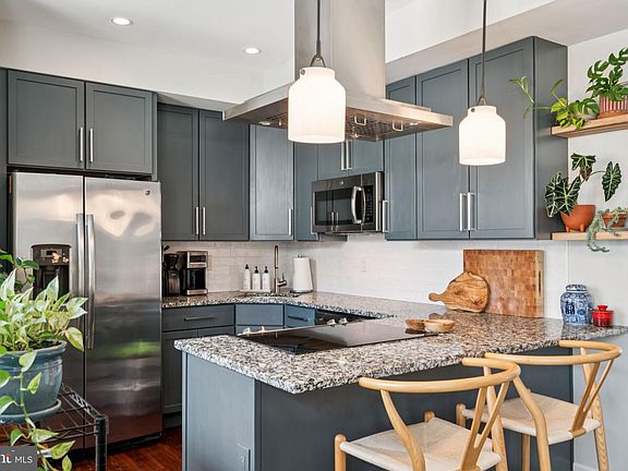 Your Pinterest board comes to life in this jewel box condo, nestled in the vibrant Francisville neighborhood of Philadelphia. No detail has been overlooked in this impeccably renovated three-bedroom, two-bath home, where custom millwork, designer-selected fixtures and finishes have replaced every builder-grade touch. From the moment you enter through your private exterior-access front door, thoughtful design greets you at every turn. The open-concept living and dining area is flooded with natural light from a full wall of east-facing windows, highlighting the warm birch hardwood floors. The adjacent kitchen features granite countertops, professionally painted cabinetry, and stainless steel appliances, creating a space that is both functional and stylish. The main level also includes a serene primary suite, framed by another full wall of windows dressed with linen curtains and blackout blinds. A huge walk-in closet provides ample storage, while the spa-like en-suite bath offers a glass-enclosed shower and built-in storage solutions that balance beauty and utility. A custom upholstered valance pulls together the serene sea glass colored board and batten millwork for a cohesive, designer look. Head down the shiplap-clad stairwell, complete with a chic jute stair runner, to a spacious lower level. This floor offers a large flex space—currently used as a home gym—a laundry room, a second full bathroom, and two additional bedrooms, each with generous windows for natural light and walk-in closets. Smart-home living is made easy with a Nest system controlling the recently upgraded central air system and a Yale keypad lock on the front door—offering year-round comfort and keyless security. Enjoy warm evenings on the expansive communal roof deck, recently updated with new flooring and offering breathtaking Center City skyline views—an ideal space for entertaining or unwinding. The building’s striking facade combines cast stone, brick, tile, and vertical metal siding, bringing a distinctly modern edge to the neighborhood. Just one block from the Fairmount Avenue corridor, this home offers unbeatable walkability to beloved local spots like Bar Hygge and RyBread for dining, Stone’s for unique beer and locally made ice cream, and Aiyah boutique for shopping—all just a couple blocks away. You'll be right around the corner from Francisville playground, The Spring Gardens, Roberto Clemente Playground and the Green Street Dog Park. With easy access to public transit and nearby green spaces, the best of city living is right outside your door. Buyers are responsible for verifying taxes and square footage.