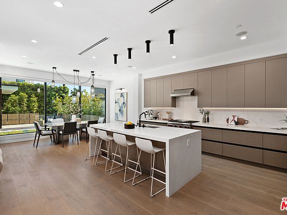 Welcome to this fully gated, stunning modern masterpiece located in one of Los Angeles' most vibrant neighborhoods. Surrounded by lush, mature landscaping, this five-bedroom, five-and-a-half-bathroom home seamlessly blends contemporary elegance with ultimate comfort. Designed for both luxury and functionality, each of the 5 spacious bedrooms in the main house features its own private ensuite bathroom, ensuring privacy and convenience. The primary suite is a true retreat with a private balcony overlooking the pool and spa, offering a peaceful escape. The spa-inspired primary bathroom boasts elegant finishes, a soaking tub, and a spacious layout, creating a serene space to unwind. At the heart of the home, the gourmet kitchen is a chef's dream, featuring high-end appliances, sleek quartz countertops, ample storage, and a seamless flow into the dining and living areas. Designed for effortless entertaining, the open floor plan is complemented by an integrated sound system, perfect for both intimate gatherings and lively get-togethers. Step outside to a private backyard oasis, where a sparkling pool and spa create a resort-style ambiance. The covered patio with an outdoor sound system, built-in BBQ, and lush greenery make this space ideal for hosting summer soires or relaxing under the California sun. A charming detached 418sqft pool house, complete with a bathroom and kitchenette, adds extra convenience and flexibility. This home offers unparalleled access to trendy coffee shops, top-rated restaurants, comedy clubs, art galleries, and moreall just steps away. AT&T Fiber internet available! Planters in the back of the house have been removed to include 2 car parking, and new 220V EV charging port capabilities added from the guest house.
