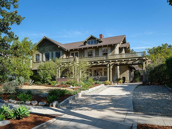714 Prospect Boulevard, in Pasadena's Prospect Park National Register District, was designed by architect Louis Millar between 1909 & 1911 as the home for J.C. Brainard, one of Prospect Park's 3 original developers. With striking curb appeal and an ideal location in the heart of the picturesque neighborhood, this transitional craftsman home comes to market for the first time in 65 years. It is set amongst architectural gems by Frank Lloyd Wright, Greene and Greene, Wallace Neff, the Heinemans and more. With 5 bedrooms and 31/2 baths in 3,137 interior square feet (taped) on a deep, flat lot measuring 11,755 square feet (assessor), ownership of this home is a rare opportunity in a prized location. A spacious foyer separates the dining and living rooms, both with box beam ceilings and quarter sawn oak floors. A studio/garden room with bonus storage opens to the patio and backyard. An updated, whimsical retro kitchen and authentic butler's pantry is at the rear of the home and is immediately adjacent to a guest quarters with a 3/4 bath. The center stairway leads to the upper landing, from which 4 bedrooms radiate (one tandem), including the primary suite. Original maple flooring runs throughout the upper floor, and beautiful double-hung windows and French doors offer plentiful natural light. The detached garage can readily provide interior parking for 2 vehicles, with some access modifications. This special offering is close to the Rose Bowl, Old Town Pasadena, and the best of West Pasadena.