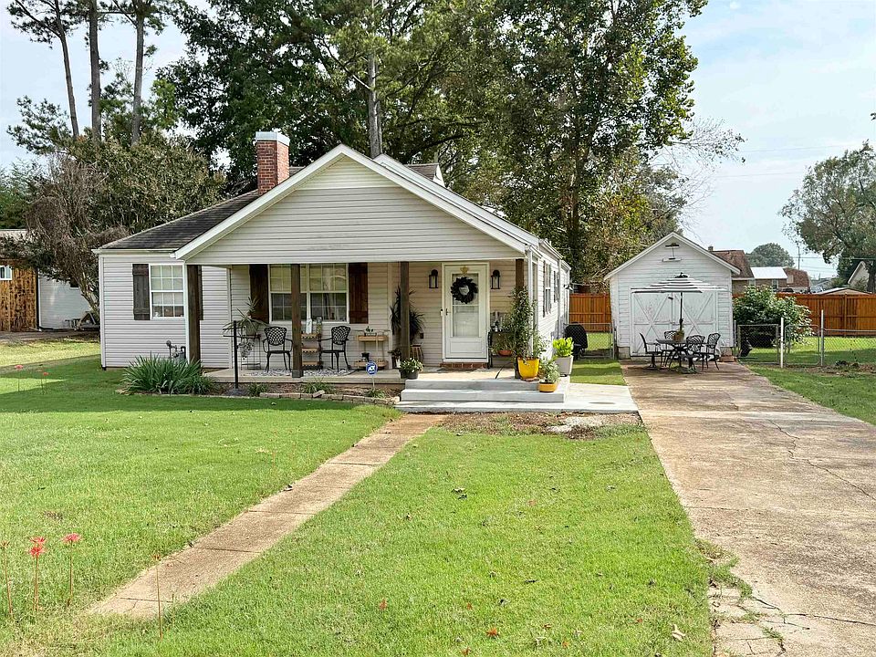 to this 1564 sq ft home- you are welcomed by an open floor plan with lots of natural light. The cozy family room has a fireplace with gas logs to add extra warmth. A split bedroom floor plan is not common for a 1940's cottage-but this home has it. The primary bedroom is great sized with a wonderful bath and customized walk-in closet, as well as french doors that beckon you to the back yard patio.There are 2 additional bedrooms that have laminate floors, nice windows and share a hall bath.The kitchen is large with lots of storage and opens right up to the dining area which makes entertaining easy! Extra space in the laundry room can easily be used to store small appliances and pantry items. Such a great use of space! The property sits on 2 lots,has a detached storage shed/workshop,and has had many upgrades in the last several years.