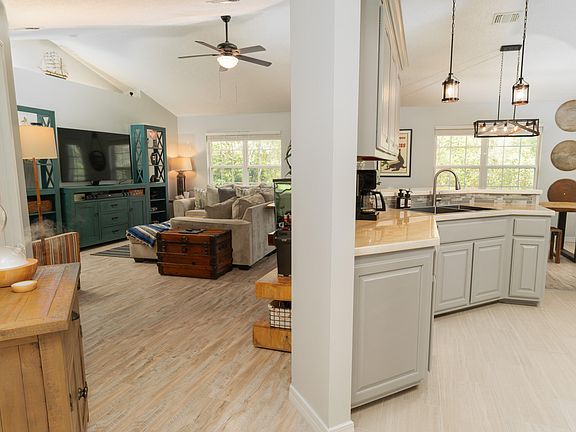 This stunning 4/2 home has been tastefully remodeled and is located on the southeast side of Crestview! New roof (12.2021) and updated landscaping. When you walk in the front door, you will find an open floor plan home with updated flooring, lighting, paint, blinds, & electrical outlets! The kitchen is complete with freshly painted wood cabinets, new tile, backsplash, and an open view to the dining and living. The en suite primary bathroom has new tile, new paint, a huge soaking tub, walk-in closet, and separate water closet. The separate shower is very relaxing thanks to new tile, pebble stone floor, and a rain shower head! The back yard has two large decks and a great sized yard with a perfect view of all the trees and birds. Fridge does not convey with property.