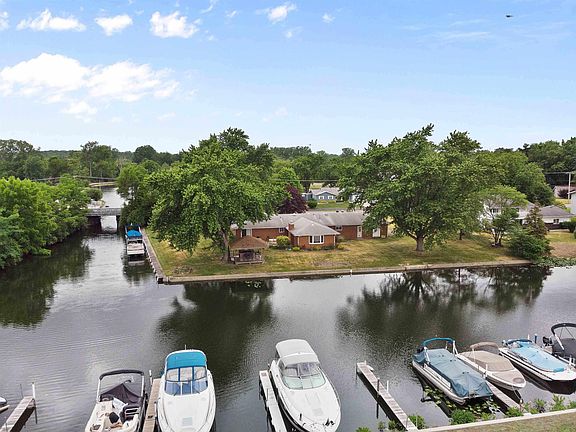 Incredible move-in ready ranch boasting 300’ of channel frontage w/ seawall, big deck, easy access to Lake Wawasee & tons of updates plus attached mother-in-law suite w/ private entrance! Located on large 0.58 acre corner lot in low traffic area w/ secluded feel, this beautifully updated 4 bedroom, 3 full bath home has lots to love & much to offer including close proximity to popular waterfront restaurants. Tucked away at end of house on other side of garage, mother-in-law suite is 480 sqft w/ kitchenette, living zone & full bath w/ walk-in shower—2 entrances: 1 lake side, 1 by drive—great income potential or spot for family member/friend. Well maintained from outside in, classic exterior is brick w/ many tall trees offering shade & privacy; attached 2 car garage is heated & temp controlled w/ oversized drive & parking for 10+. Covered front entrance to main house opens to bright & welcoming atmosphere complemented by updated fresh paint, flooring, fixtures & window treatments throughout. Floor plan makes the most of the space w/ open & inviting layout featuring plenty of windows allowing natural light & peaceful water views. Generous living room has fireplace to keep you cozy all year long w/ sliding glass doors to walk out deck (new 2020) & enough room for a pull-out sofa to accommodate more guests. Cheery kitchen has everything you need w/ abundant cabinetry, tile backsplash, granite counters & SS appliances all new in 2018—links to living room & perfect for entertaining! Wonderful primary bedroom has its own set of sliding glass doors to back deck & stylish en suite bath w/ trendy dual sink vanity. Remaining 2 bedrooms are comfortably sized w/ ample storage throughout; main shared bath has matching vanity. Fantastic deck is huge & sure to be a hit w/ wrap around water views & lush greenery adding to zen vibe—just imagine kicking back, relaxing & enjoying a cold drink, your morning coffee or dining al fresco! Tiki bar closer to water includes bar decor & barstools, excellent for parties! Also included in sale: gas grill, security equipment (4 external cameras, glass break alarms, etc). Negotiable: living room furniture, dining table & chairs, bookshelves, bedroom set & patio furniture. Seller to replace roof; new windows in living room & front bedrooms (2019), new well pump 6/23. Walking distance to downtown, ideal for golf cart travel too! Channel access to both Wawasee & Syracuse Lake which are all sports lakes. Reach out today!