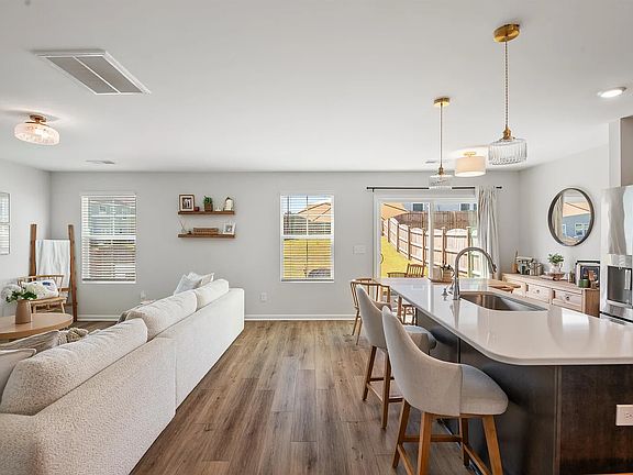 This stunning 3-bedroom, 2.5-bath home in the Ellington community of Elgin is practically brand new and loaded with upgrades. With nearly 2,000 square feet of living space, it offers a bright, open floor plan designed for comfort and style. The main level features luxury vinyl plank flooring, recessed lighting, and a modern kitchen with quartz countertops, stainless steel appliances, and a spacious island that's perfect for entertaining. French doors open to a private home office or den, while an upstairs loft provides extra living space for relaxation or play.