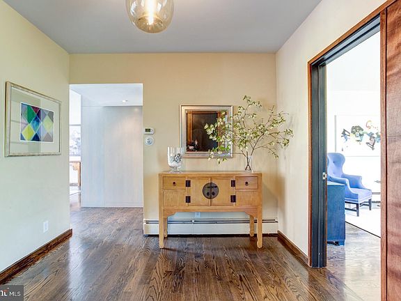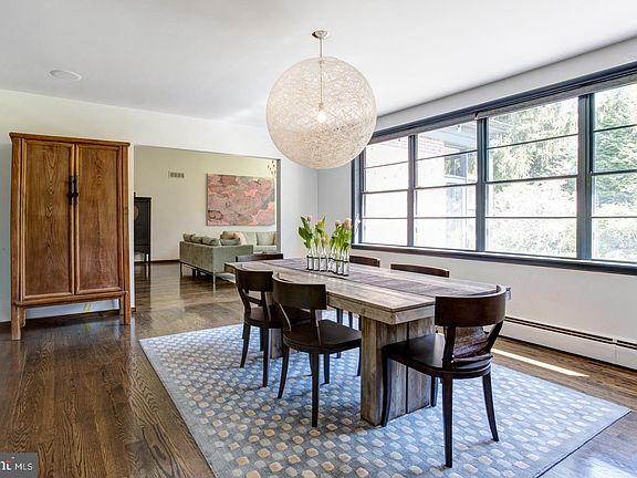If spacious, mid-century modern living is what you desire, then look no further. Artfully placed on one of Northwest Philadelphia~s most secluded streets, this property is the perfect balance between the serene nature of Wissahickon Valley and the excitement of the city. Walking into this home, you will be taken by the gorgeous entryway and living room with their dark hardwood floors, soaring ceilings and wall of windows. Simplistic accents and a seamless flow lead to a spacious, light-filled dining room. Next, you will find the kitchen with raw, modern elements that contribute to this home~s contemporary feel. Features include a Wolf range, Subzero refrigerator, stone countertops, and a modern island that becomes the focal point of the area. Also included on the first floor is a large laundry room and two powder rooms for ease of living. Step up to the next level and you will find four generous bedrooms and three full baths. The completely renovated master suite invites nature directly into the room through inset sky lights and wide corner windows. The adjoining bath with vaulted ceiling offers a double vanity, a soaking tub, and separate frameless shower. Step down a level and enjoy the vibrant family room, including a cozy study alcove with custom shelving. You will also find an incredible private suite with a large glass enclosed shower, plus flex room for office or play. The peaceful setting makes this home the perfect retreat for family and friends. The sweeping flagstone terrace overlooks more than an acre of open green space, mature plantings, a custom basketball court and a two car garage. Situated close to the shops and dining of ~the Avenue~ yet nestled into the woods, everything you want is accessible. Come see why 714 Saint Georges Road is one of Philadelphia's best kept secrets.