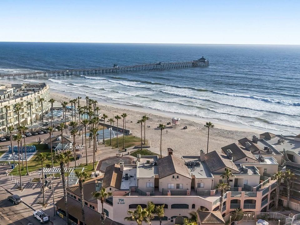 Whether you’re searching for a serene weekend getaway, a lucrative short-term rental, or the perfect place to call home with the Pacific Ocean at your doorstep, this Imperial Beach condo delivers on every level. Set within a secure, VA-approved gated community that allows vacation rentals, it offers rare flexibility for both lifestyle and investment. This desirable first-floor residence features one of the largest patios in the complex—an expansive private retreat where you can soak in sweeping views (see supplement) of the surf, the iconic Imperial Beach Pier, and lively Dunes Park. From your living room, step right onto the veranda and enjoy your morning coffee while the ocean provides the soundtrack. Inside, the home shines with thoughtful updates: fresh interior paint, new kitchen appliances, modern LED recessed lighting, stylish fixtures, and a brand-new HVAC system. Both bathrooms have been upgraded with sleek quartz countertops, and the spacious bedrooms provide a restful haven. Floor-to-ceiling dual-pane windows frame endless ocean vistas, filling the open living area with light and energy. The community enhances the experience with resort-style amenities, including a newly renovated pool and spa, plus two secure parking spaces and additional storage. Best of all, you’re just steps from local dining, shopping, and miles of sandy beach—embracing the ultimate walkable coastal lifestyle. Do not miss this rare opportunity to own front-row ocean views, unforgettable sunsets, and the effortless rhythm of beachfront living in Imperial Beach.
