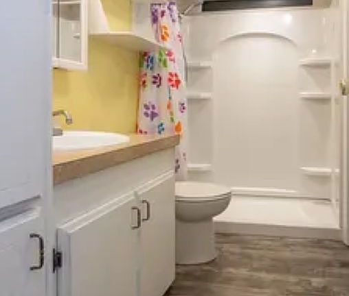 Good size closetDining roomNice bathroomPrimary bedroomNew vinyl windowsCedar fenceButcher block island