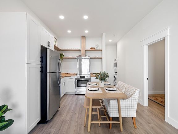 Fully renovated apartment in the Downtown Hoquiam Business District. All new cabinetry, fixtures, flooring, paint, appliances, and more. The open living area features laminate flooring and custom kitchen shelving with stainless steel and matte black finishes. Large bedroom with spacious closet overlooks the back patio, plus an additional room perfect for an office or separate sleeping space. Brand new stacked full-size laundry is located at the end of the hall with a modern white full bathroom nearby. Low-maintenance landscaping and off-street parking complete this updated unit along with the amazing brunch aromas from the neighborhood!