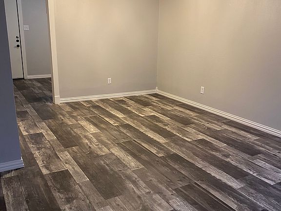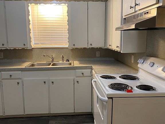 Vinyl plank linoleum flooring throughout, central heat and air conditioning, big shaded back yard, dryer hook ups, tub/shower combo with surround, miniblinds on all windows, all electric. Concrete driveway and sidewalk to front door