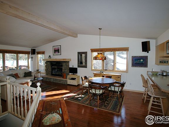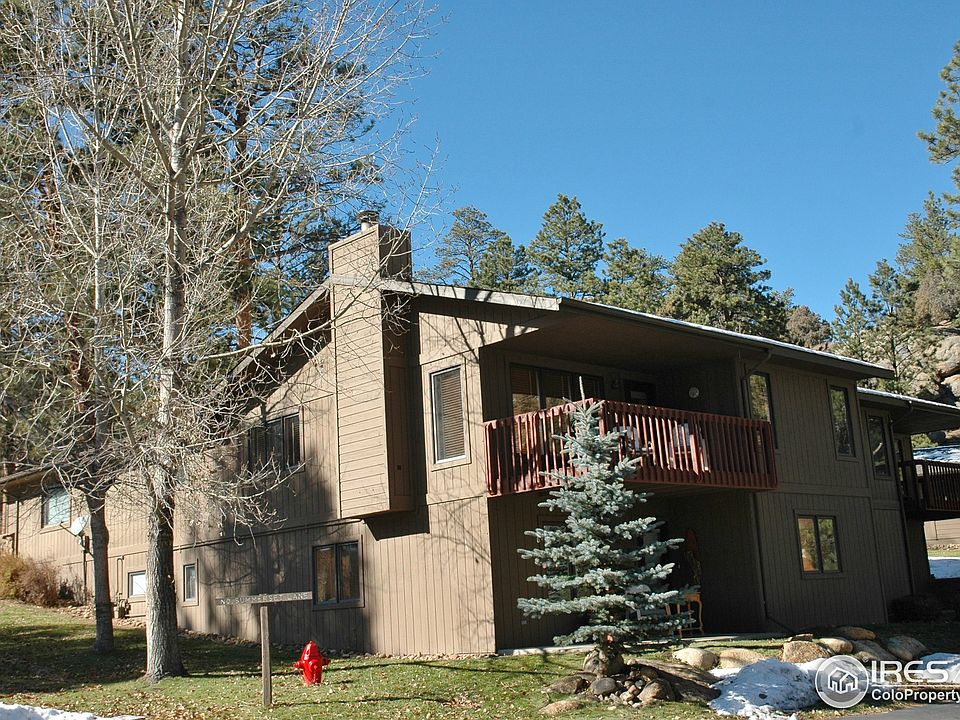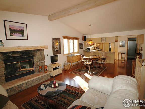 Second owner sleeper close enough to hear the Fall River on summer nights. This beautiful condo is nestled in the pines with warm indoor space and great outdoor space consisting of an upper deck and lower patio area. Large master with a spacious master bath located on the main level with a wonderful great room including moss rock gas fireplace. Many new upgrades like tile,carpet, hardwood floors and a redone deck make this fabulous property move in ready. Right down the road from RMNP.