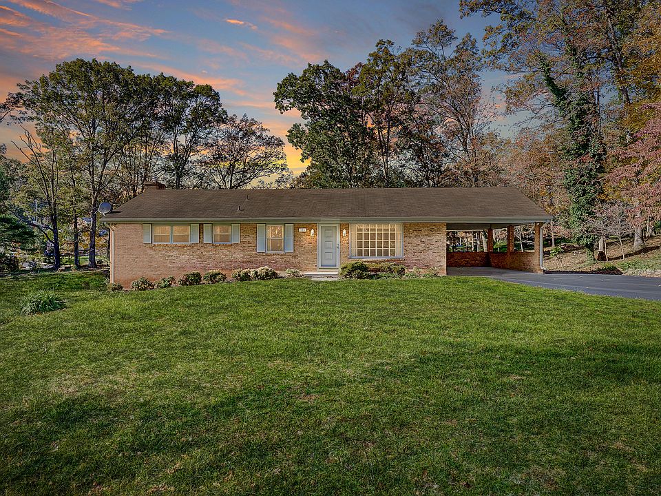 Maintenance free ranch on large (1.37 ac) level lot. The entry level has hardwood floors and includes a recently remodeled kitchen off of the carport, living room, dining room, master bedroom with half bath, 2 additional bedrooms and a full bath. The lower level has a large rec room with stone fireplace with insert, kitchenette w/ stove and an office that can be used as an in-law suite with separate entry and covered patio. The laundry area with utility sink, washer/dryer that convey and large storage area are also on the lower level. A separate paved driveway provides access to a detached garage with 2 side storage units as well as a detached RV carport. The large lot is perfect for kids, pets or hosting friends and family and could possibly be subdivided to create an extra building site.