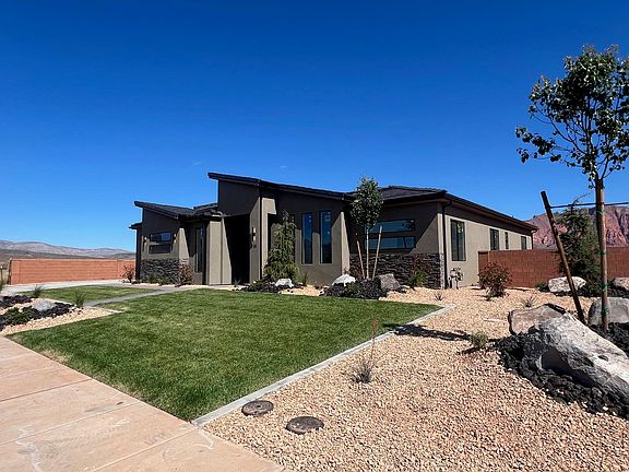 COMPLETED NEW CONSTRUCTION. This gem backs up to a privately owned ranch and has absolutely stunning, unobstructed views of the Red Mountain. Enjoy upgrades & remarkable design choices throughout,to include: Open floor plan, 37.1 ft deep RV garage (accommodates two tandem cars), a beautiful metal front door, and leathered granite countertops throughout. A combination of painted cabinets and warm knotty alder cabinets, and built-in GE CAFE appliances enhance the kitchen. Gather around the cozy fireplace, or enjoy a view of the majestic red mountain from any room along the back or from your back patio. Close to hiking and biking trails, Snow Canyon State Park, Tuacahn Amphitheatre, Kayenta Art Village, and Gunlock Reservoir.