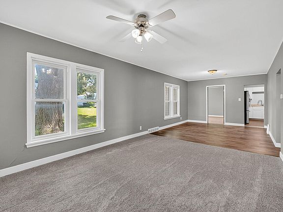 Easy living all on one level with tons of updates including new LVP flooring, carpeting and fresh paint throughout. This spacious home offers 4 bedrooms and 2 baths, including a private master suite with a jetted tub. Enjoy the large living room and completely updated kitchen with modern white cabinets and stainless steel appliances. Main floor laundry and a mud room add convenience. Outside, you will find a deck, large yard, and insulated 2+ car garage. Midwest Basement waterproofing provides added value and peace of mind.