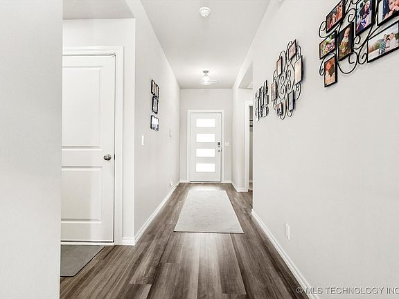 Additional highlights include: A covered rear patio for outdoor enjoyment, a backyard view of a creek, Luxury vinyl flooring throughout the main living areas, kitchen, and bathrooms, A tankless water heater for efficiency,. This home, built in 2022, comes with upgrades you won?t find in a standard new build, such as luxury vinyl blinds, elegant ceiling fans, and an 8-person storm shelter. A fully fenced backyard with a sprinkler system and gutters. Don't forget, The Smart Home package adds modern convenience with a front doorbell camera, smart lock, thermostat, and ADT security system.