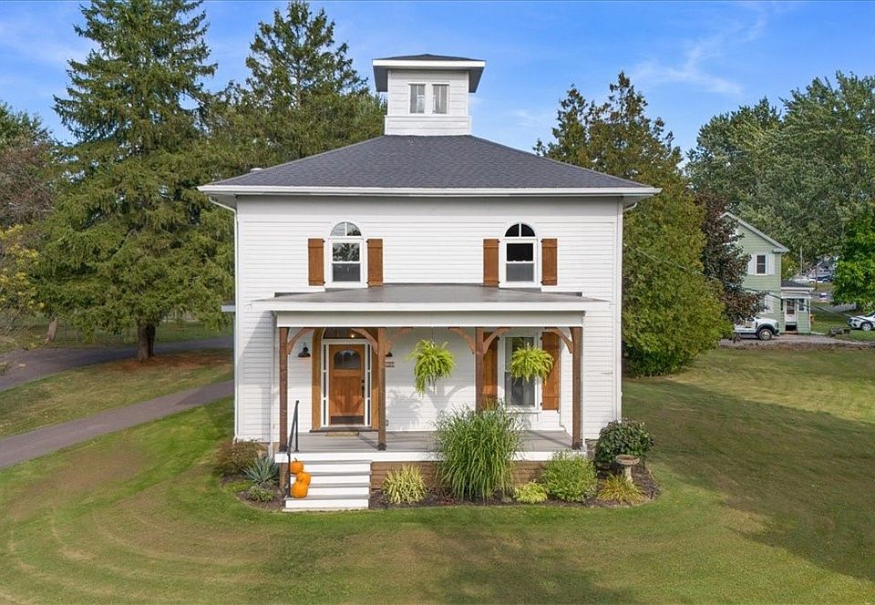 Now is your chance to own one of the most historic homes in the highly desirable Owasco School District! This turn-key, beautifully updated 1870's home has retained many of its charming, original farmhouse features such as hardwoods throughout, french doors with glass knobs, a spiral entry staircase and cast iron radiators. Enjoy breakfast in the light-filled, eat-in kitchen featuring new quartz countertops, custom cherry cabinets and stainless steel appliances. The spacious living room includes a pellet fireplace insert for chilly nights and mini split air conditioning to keep cool in NY summers. From the large rocking chair front porch a custom stained glass door will welcome your guests to the foyer with a grand spiral staircase. .