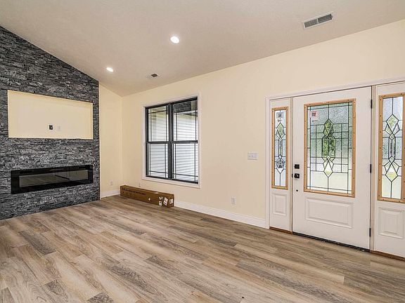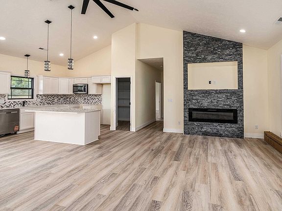 Stoned electric fireplaceWalk-in pantryOpen conceptSplit floorplan designCovered patioPrivate backyardStunning high-end backsplash